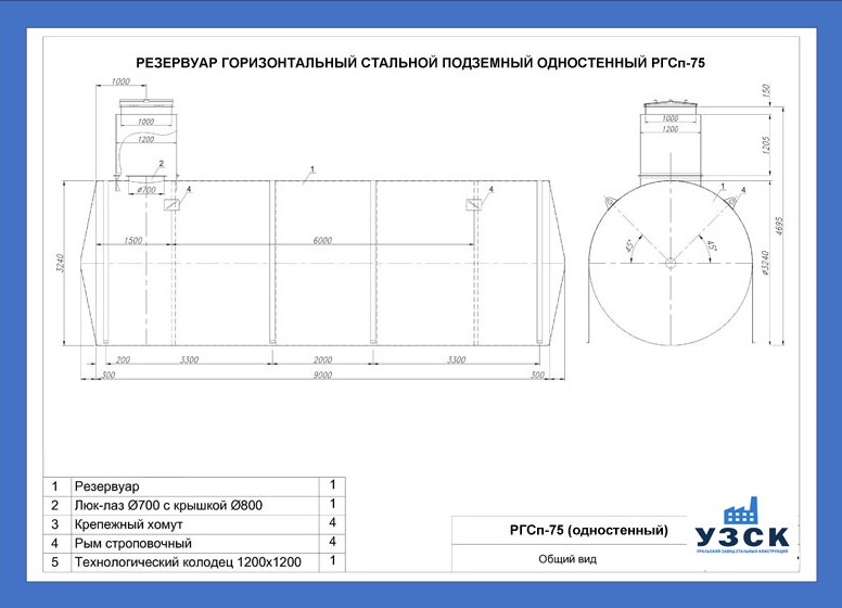 РГСДн-75: горизонтальный резервуар двустенный наземного расположения;